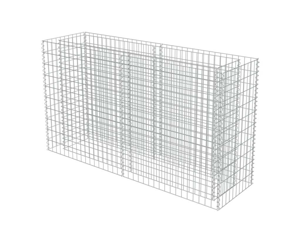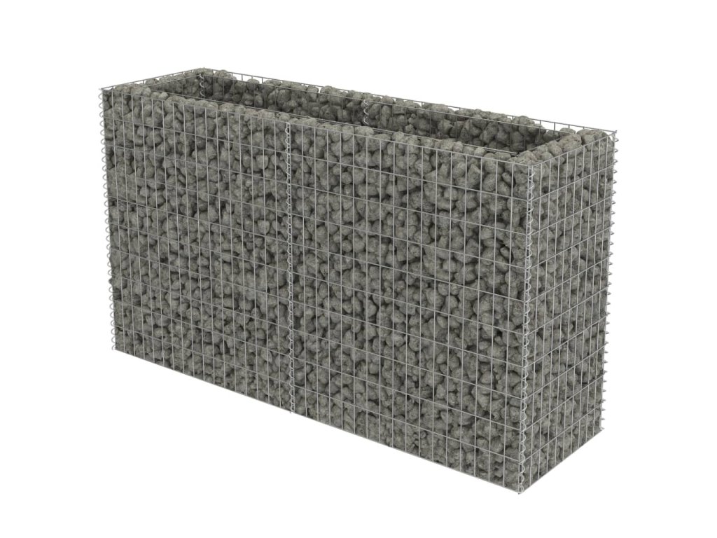 Stabilný gabión je určený na to, aby sa do neho vložili kamene alebo štrk. Gabión je vyrobený z pozinkovanej ocele, ktorá je odolná voči hrdzi a poveternostným vplyvom, vďaka čomu vytvorí veľmi stabilný a trvácny vyvýšený záhon. Mriežku tvoria priečne a pozdĺžne drôty, ktoré sú zvarené na každom prieseku pre čo najväčšiu stabilitu.
