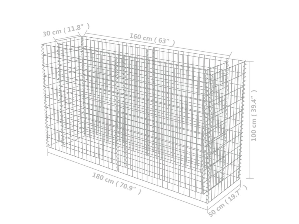 vidaXL Gabiónový vyvýšený záhon, pozinkovaná oceľ 180x50x100 cm