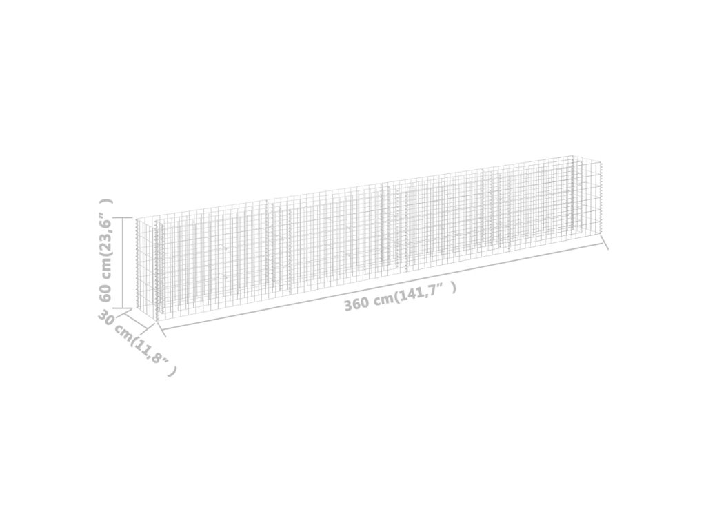 vidaXL Gabiónový vyvýšený záhon, pozinkovaná oceľ 360x30x60 cm