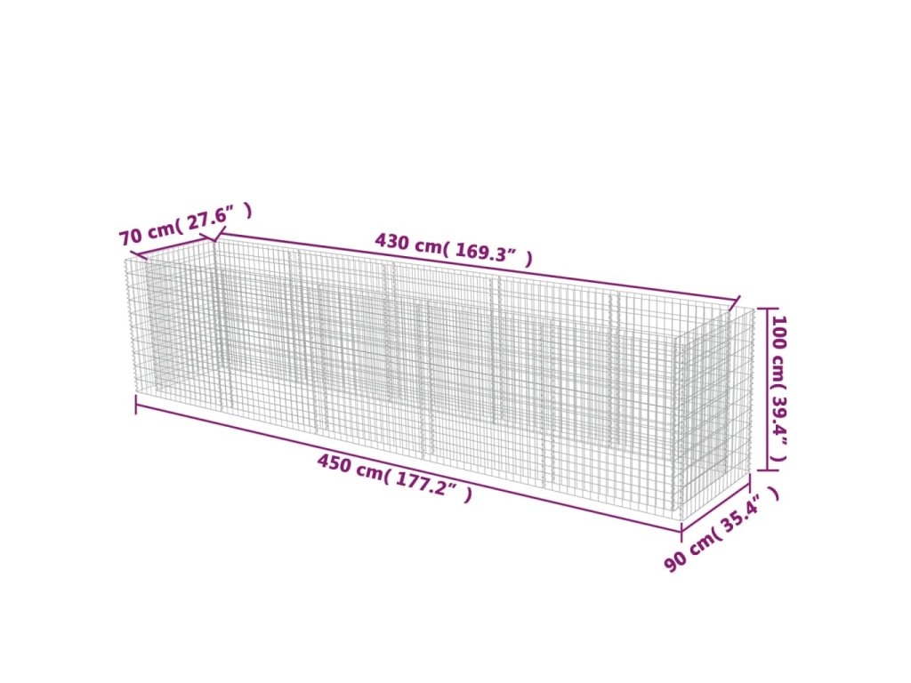 Stabilný gabión je určený na to, aby sa do neho vložili kamene alebo štrk. Gabión je vyrobený z pozinkovanej ocele, ktorá je odolná voči hrdzi a poveternostným vplyvom, vďaka čomu vytvorí veľmi stabilný a trvácny vyvýšený záhon. Mriežku tvoria priečne a pozdĺžne drôty, ktoré sú zvarené na každom prieseku pre čo najväčšiu stabilitu.