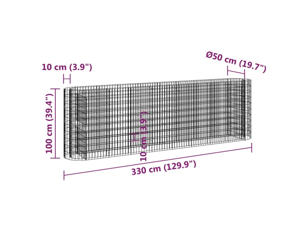 vidaXL Gabiónový vyvýšený záhon pozinkované železo 330x50x100 cm