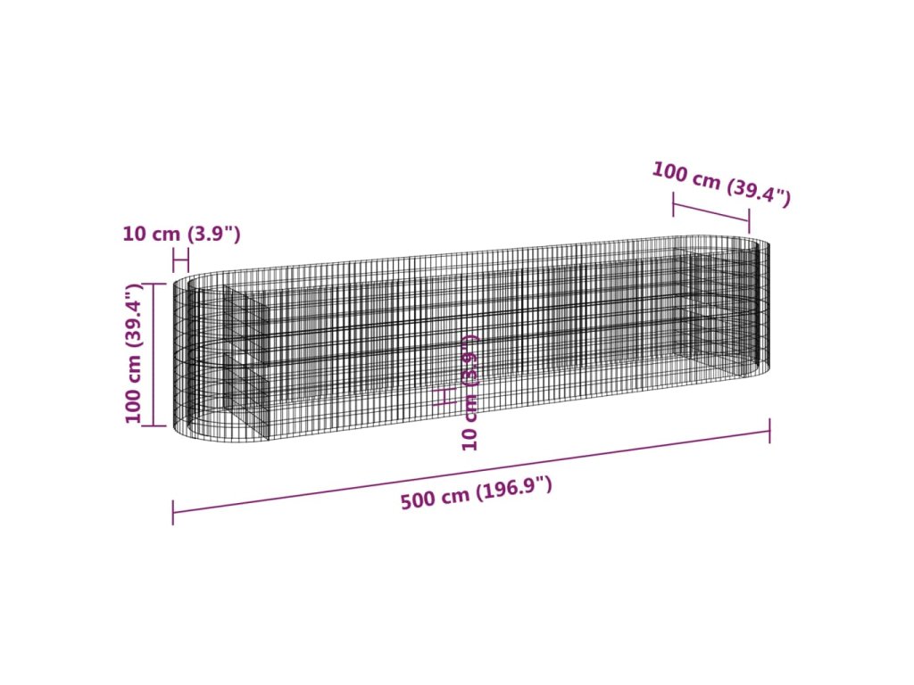 vidaXL Gabiónový vyvýšený záhon pozinkované železo 500x100x100 cm