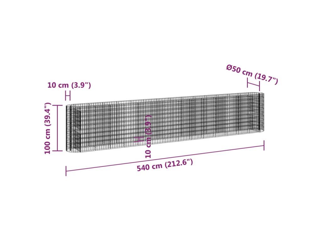 vidaXL Gabiónový vyvýšený záhon pozinkované železo 540x50x100 cm