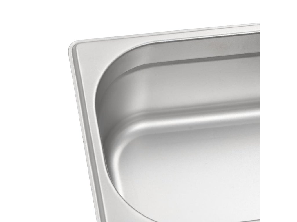 Gastronádoba má pevnú konštrukciu z odolnej nehrdzavejúcej ocele a dá sa ľahko očistiť. Keďže je vyrobená z trvácneho materiálu, nepoškriabe sa a nevyžaduje si náročnú údržbu. Nádoba na jedlo má štandardné GN rozmery, a preto je univerzálna a dá sa používať v rôznych kombináciách. Zároveň sa zmestí do všetkých profesionálnych kuchynských liniek a zariadení, ako napríklad do nádob na vodný kúpeľ bain-marie či do nádob na ohrievanie jedla, ale aj do šalátových barov. Kuchynské nádoby je možné poukladať na seba a odložiť, aby nezaberali zbytočne veľa miesta, a preto sú skutočne praktické a vhodné do reštaurácií a hotelov, na rôzne podujatia, no zídu sa aj v domácnosti.