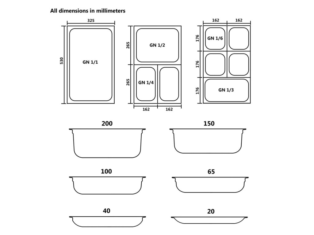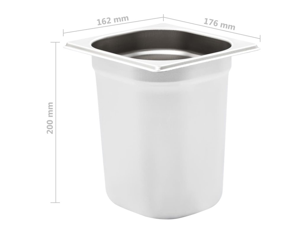 Gastronádoba má pevnú konštrukciu z odolnej nehrdzavejúcej ocele a dá sa ľahko očistiť. Keďže je vyrobená z trvácneho materiálu, nepoškriabe sa a nevyžaduje si náročnú údržbu. Nádoba na jedlo má štandardné GN rozmery, a preto je univerzálna a dá sa používať v rôznych kombináciách. Zároveň sa zmestí do všetkých profesionálnych kuchynských liniek a zariadení, ako napríklad do nádob na vodný kúpeľ bain-marie či do nádob na ohrievanie jedla, ale aj do šalátových barov. Kuchynské nádoby je možné poukladať na seba a odložiť, aby nezaberali zbytočne veľa miesta, a preto sú skutočne praktické a vhodné do reštaurácií a hotelov, na rôzne podujatia, no zídu sa aj v domácnosti.