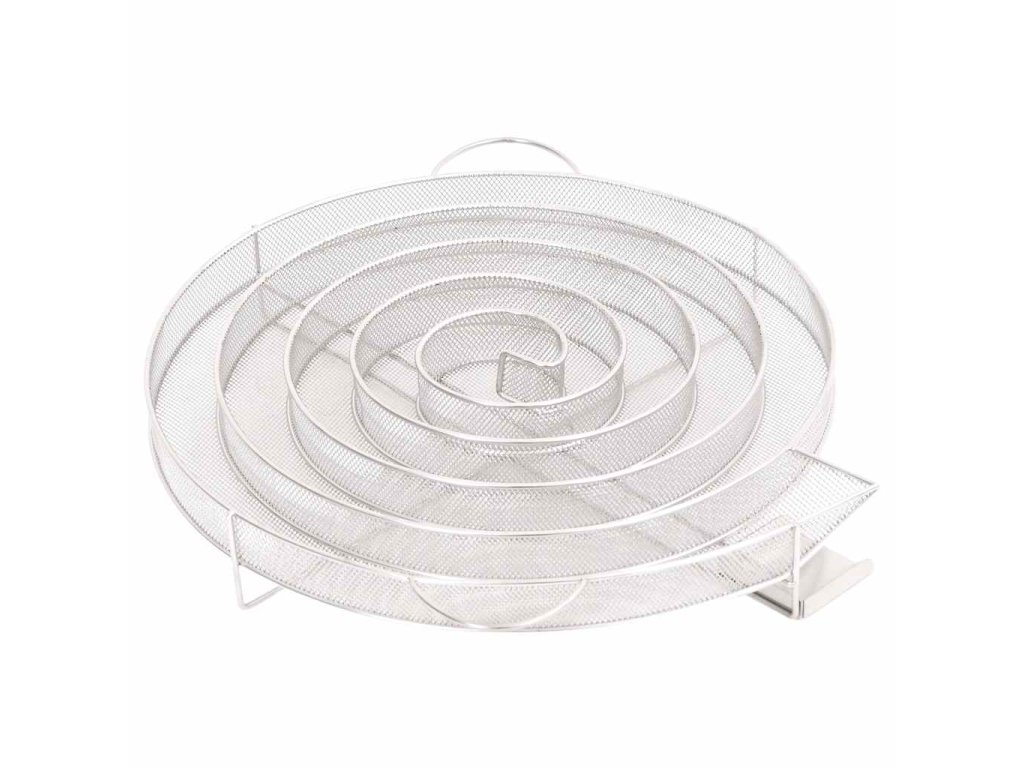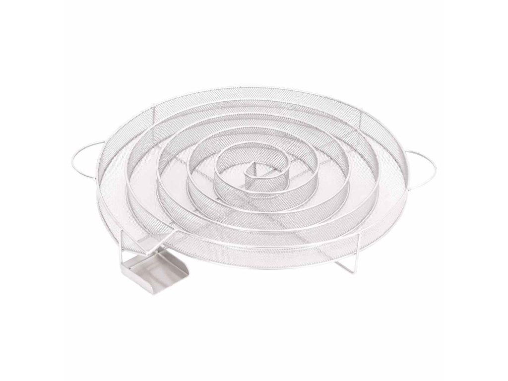- Pevná mriežková konštrukcia: Kompaktná mriežka v tvare slimáka umožňuje rovnomerné a pomalé horenie štiepky na údenie až po dobu 20 hodín. Trvanie závisí vo veľkej miere od povahy dreva na údenie. Pre dosiahnutie najlepších výsledkov sa odporúča používať triesky so zrnitosťou 0,5-2,0 mm.