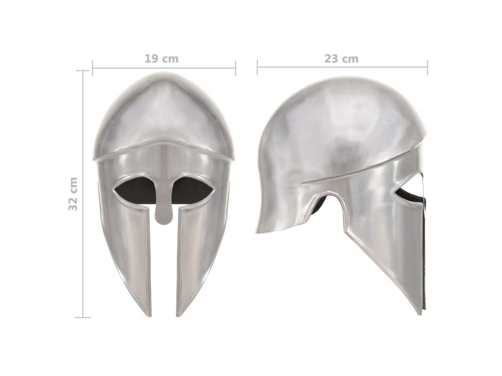Pancierová prilba je presnou replikou pôvodnej gréckej prilby. Bola vyrobená z ocele s 18 gauge a kombinuje starožitný štýl a odolný materiál. Vzniká tak pútavá prilba, ktorá dokonale ladí s vašim rytierskym outfitom. Okrem toho sa jedná aj o pútavý výstavný kúsok.