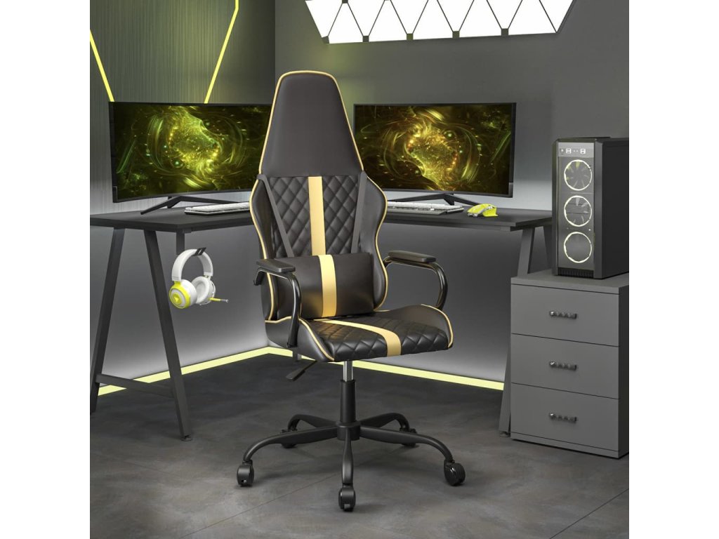 vidaXL Herná stolička čierna a zlatá umelá koža