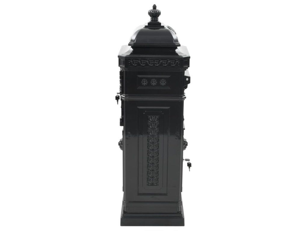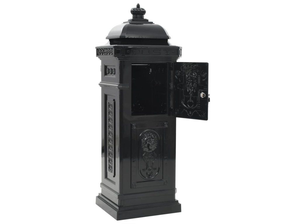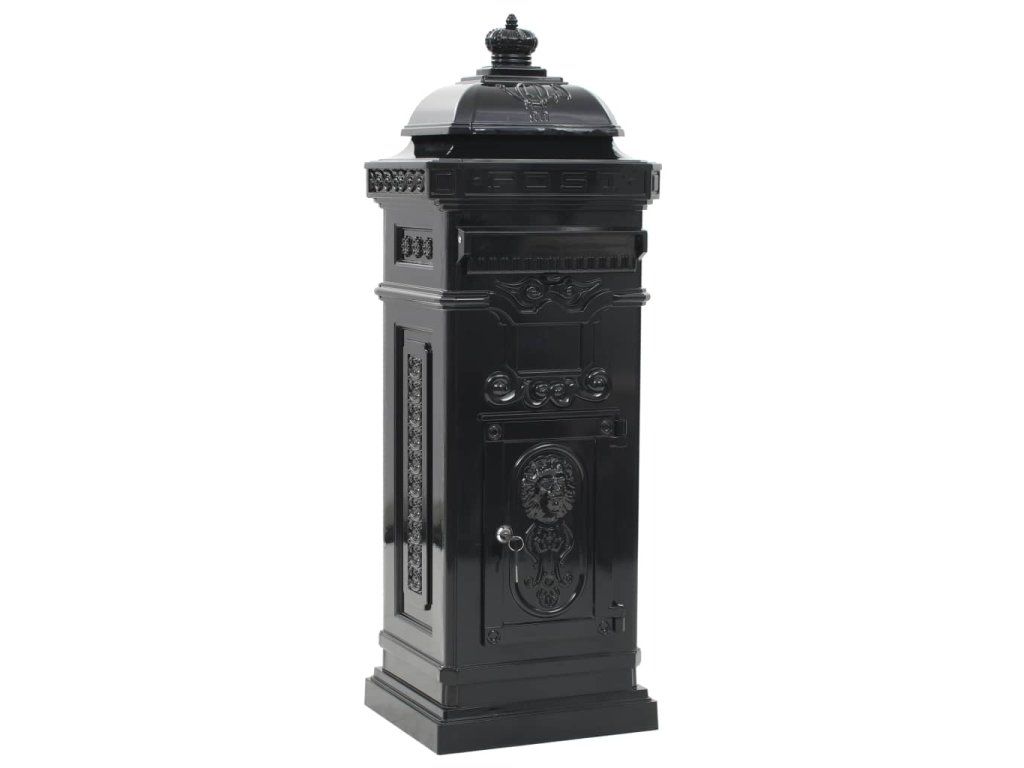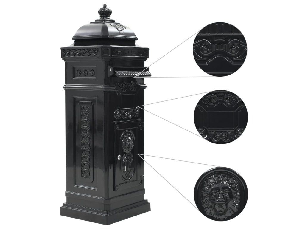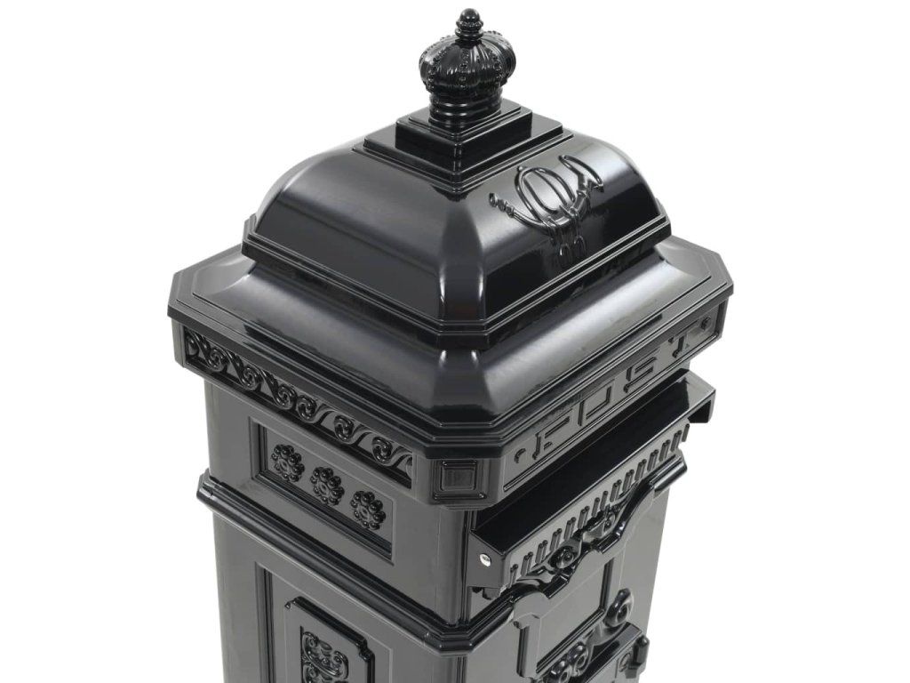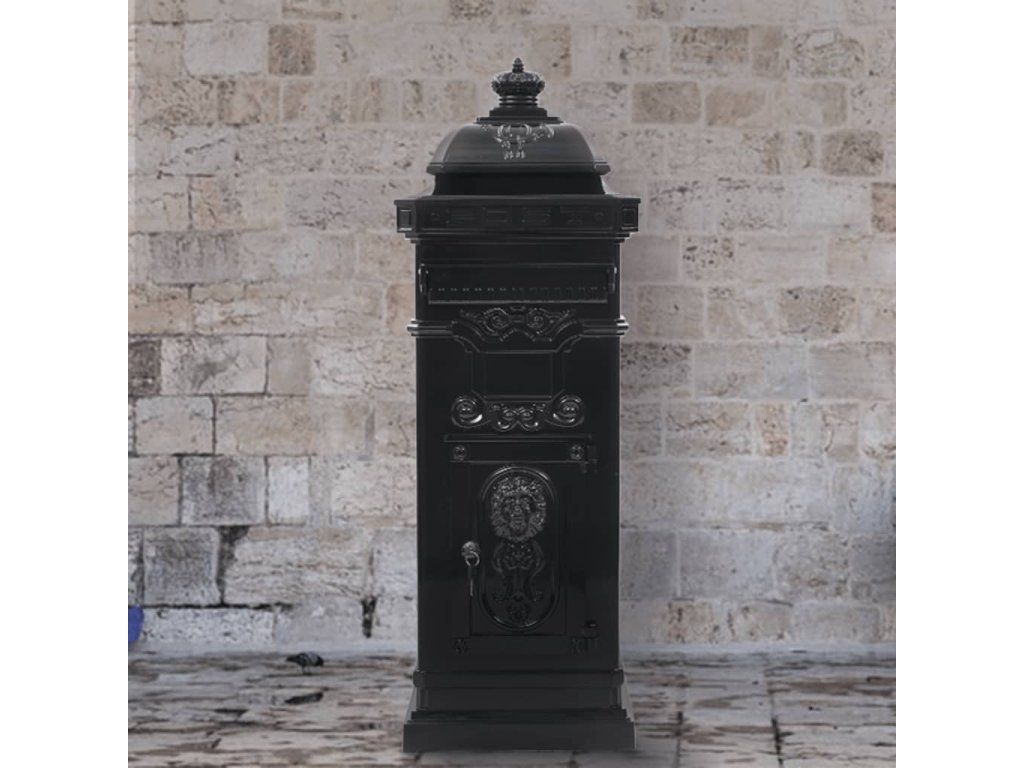 Táto stĺpová poštová schránka je navrhnutá so širokým priečinkom, ktorý má klapku pre ochránenie obsahu vo vnútri. Taktiež má dve uzamykateľné dvierka (pre každé dvierka sú pribalené 2 kľúče) na jednoduché vytiahnutie pošty. Poštová schránka je vyrobená z liateho hliníka odolného voči vplyvom počasia a hrdzi, vďaka čomu ju veľmi vhodná pre vonkajšie použitie. Je ozdobená množstvom nádherných dekoratívnych detailov vo vintage štýle a na vašej príjazdovej ceste alebo vjazde bude pútať pozornosť.