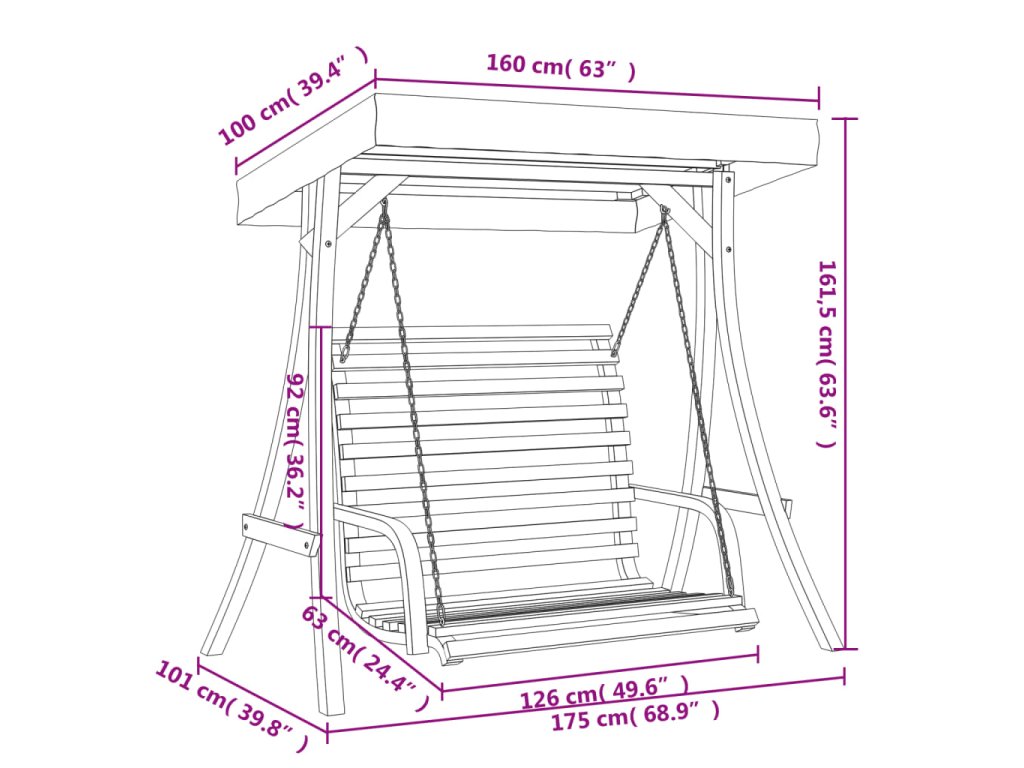 - Rozmery hojdacej lavice: 126 x 63 x 92 cm (Š x H x V)