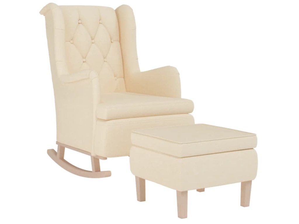 vidaXL Hojdacie kreslo s taburetkou krémové látka