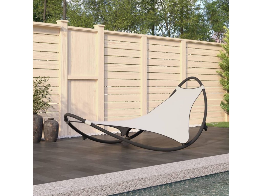 vidaXL Hojdacie lehátko s kolieskami oceľ a textília krémové