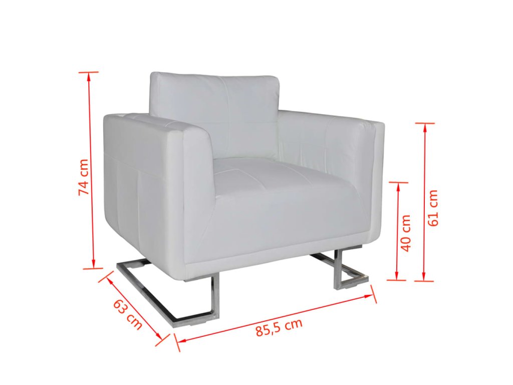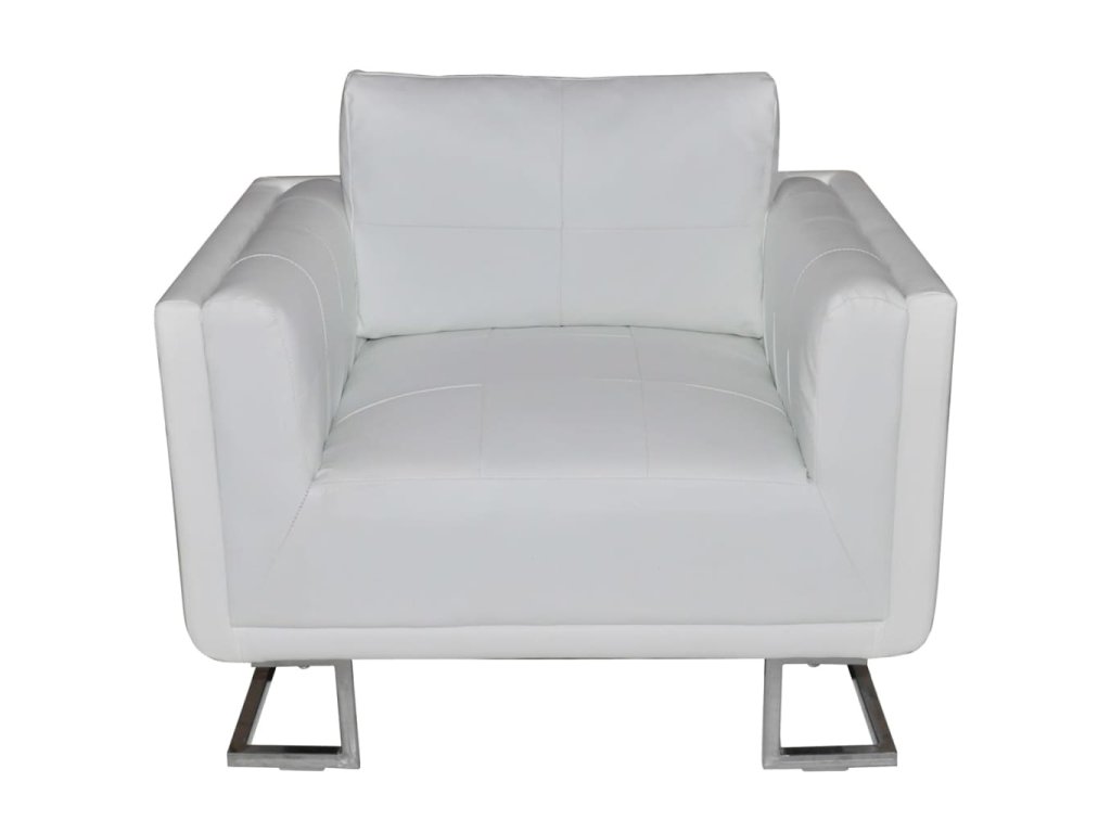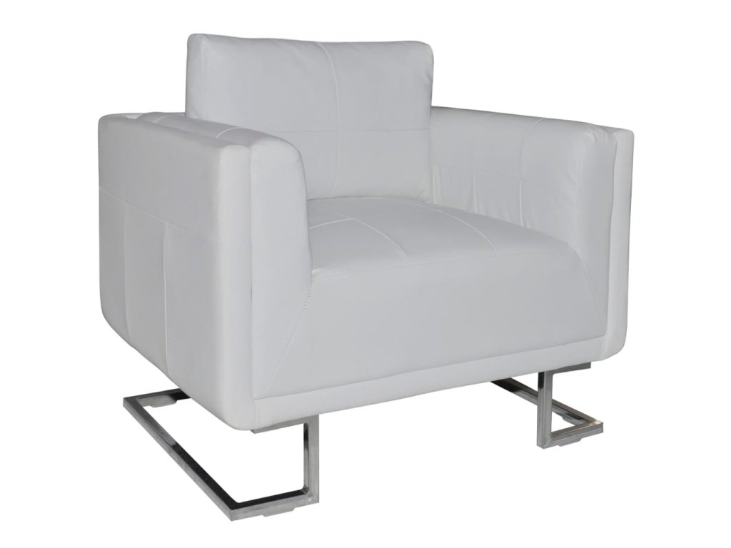 vidaXL Hranaté kreslo s chrómovými nohami, biele, umelá koža
