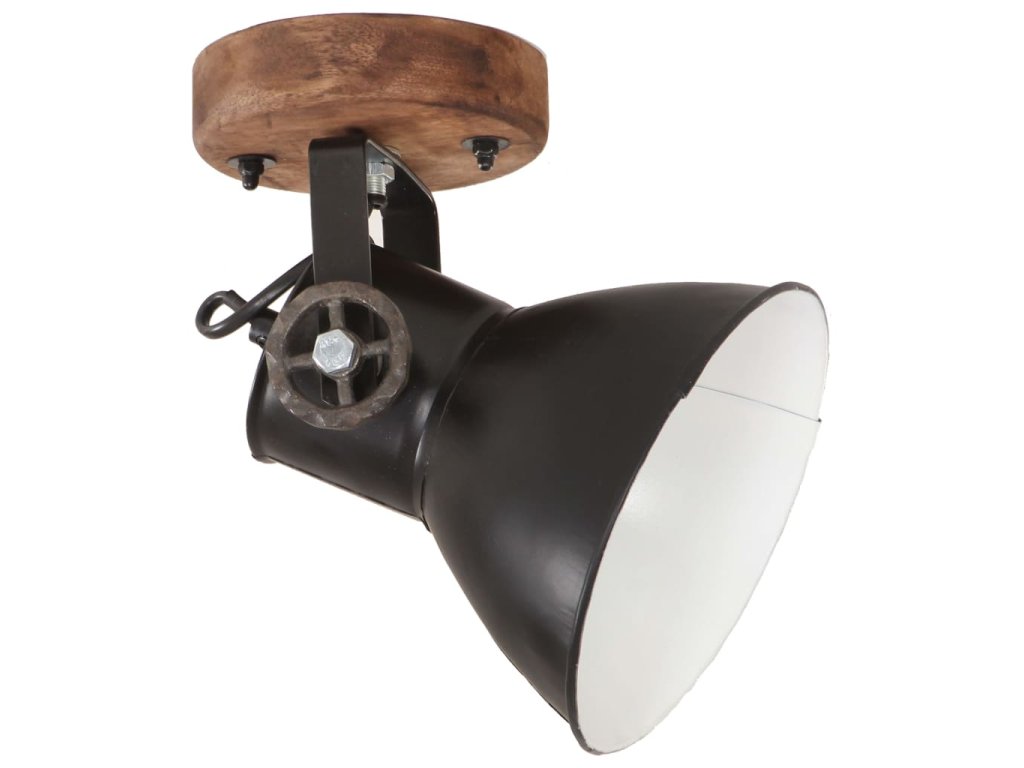 Železné tienidlá s čiernou povrchovou úpravou a mangový masív so starovidieckou povrchovou úpravou v hnedej farbe sa budú dokonale hodiť do interiérov zariadených vo vidieckom aj industriálnom štýle. Stropné lampy majú objímky E27 na žiarovky s maximálnym výkonom 25 wattov. Môžete si vybrať žiarovky s objímkou E27 s rôznymi farbami osvetlenia a vytvoriť tak v miestnosti príjemnú atmosféru ako stvorenú na relax a odpočinok. Lampy navyše môžete namontovať aj na strop.