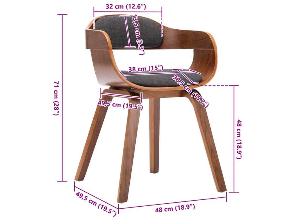 vidaXL Jedálenská stolička, tmavosivá, látka a ohýbané drevo