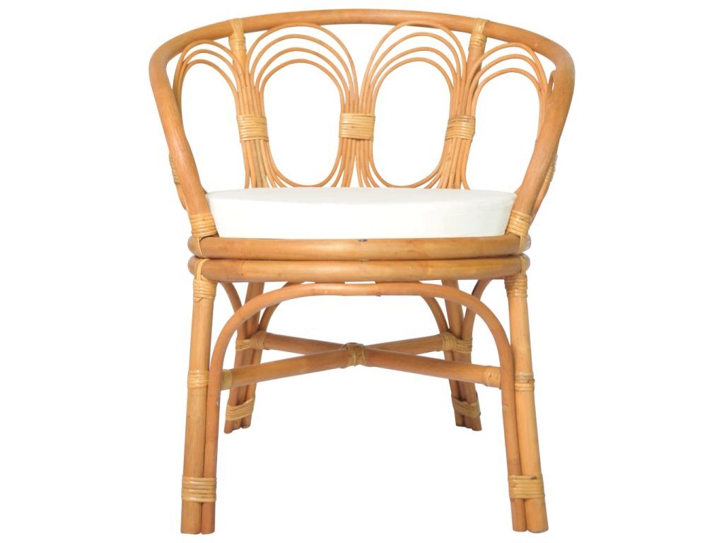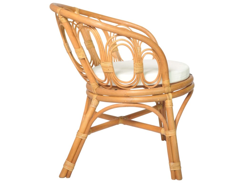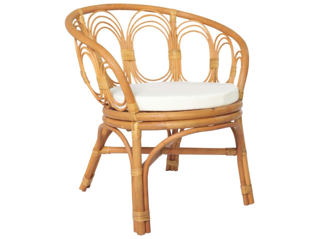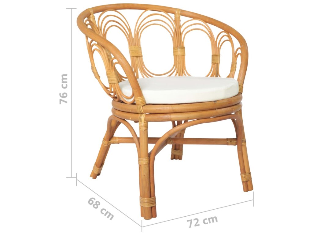 Stolička je vyrobená z prírodného ratanu, vďaka čomu je odolná a ľahko sa čistí. Mäkký vankúš vám poskytne optimálne pohodlie po náročnom dni. Jedálenská stolička má zaoblené operadlo, ktoré ponúka vynikajúcu oporu pri sedení.