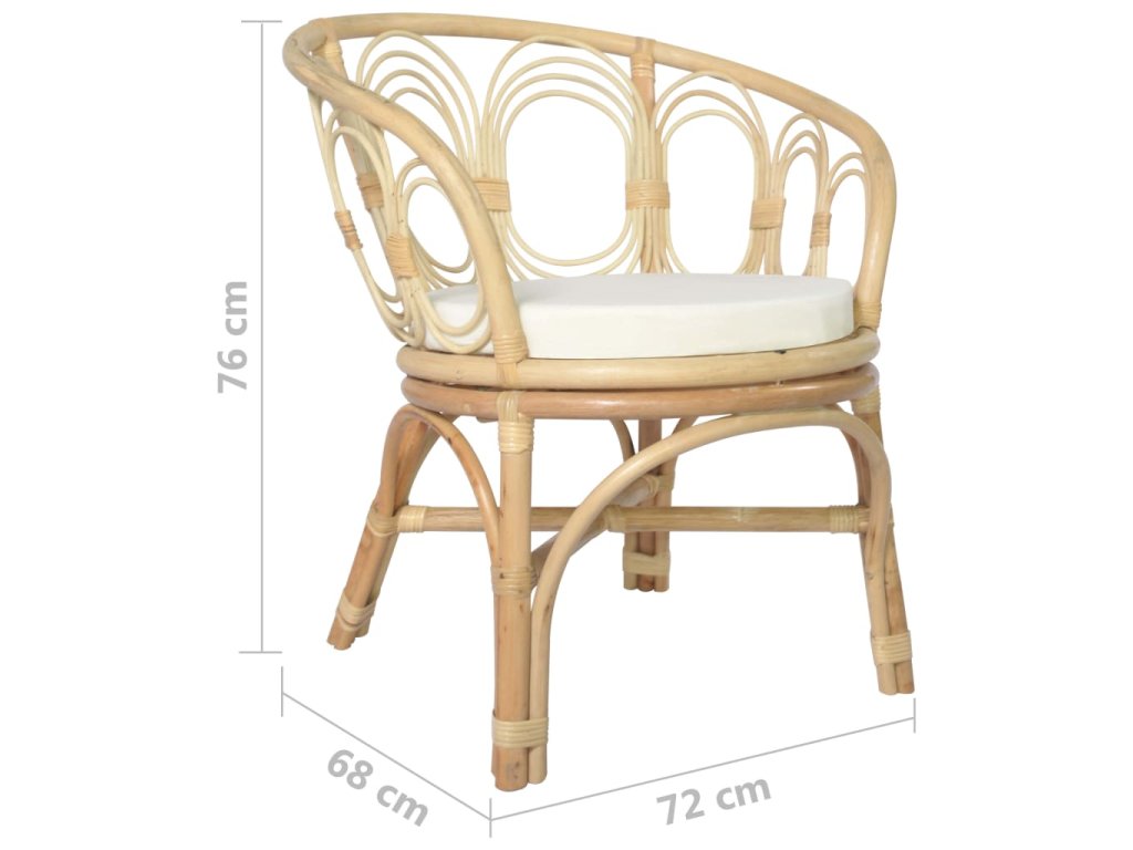 Stolička je vyrobená z prírodného ratanu, vďaka čomu je odolná a ľahko sa čistí. Mäkký vankúš vám poskytne optimálne pohodlie po náročnom dni. Jedálenská stolička má zaoblené operadlo, ktoré ponúka vynikajúcu oporu pri sedení.