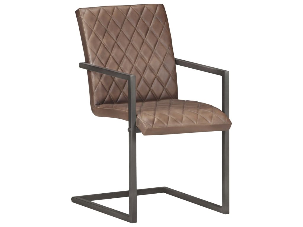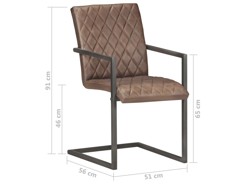 vidaXL Jedálenské stoličky, perová kostra 2 ks, hnedé, pravá koža
