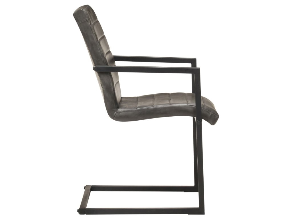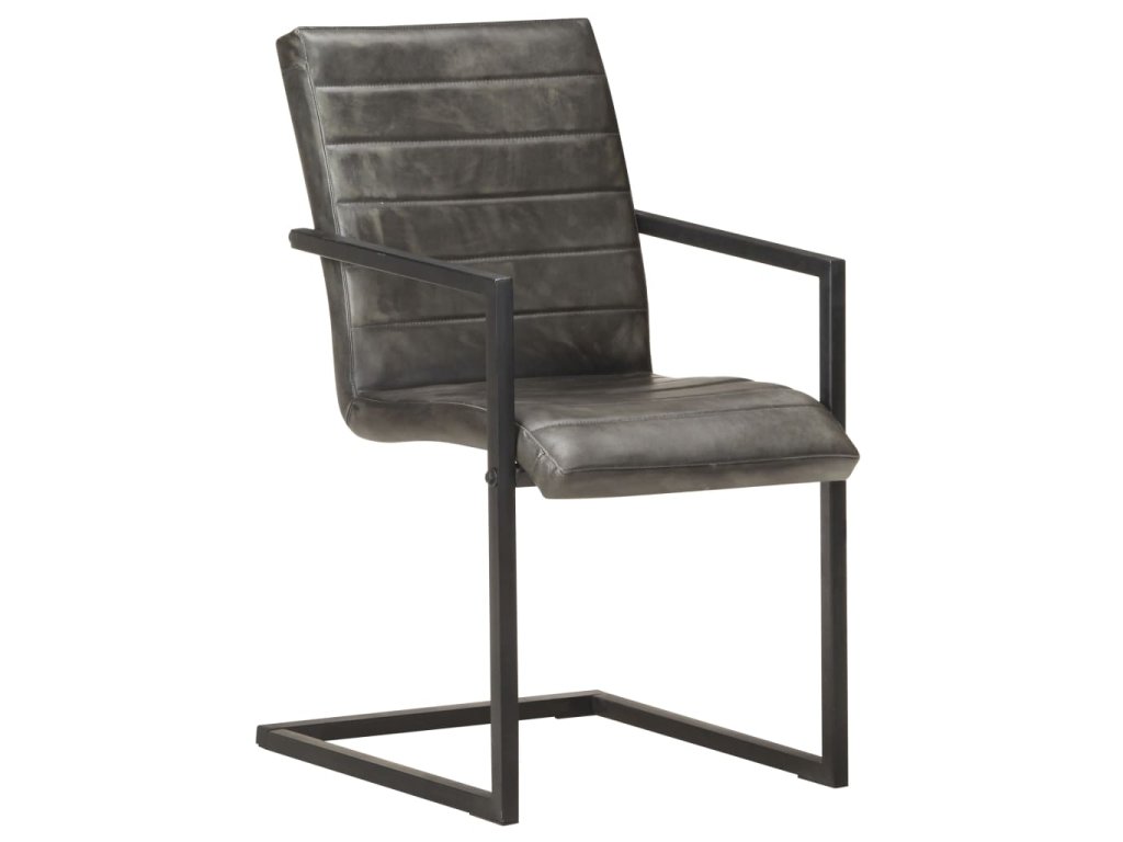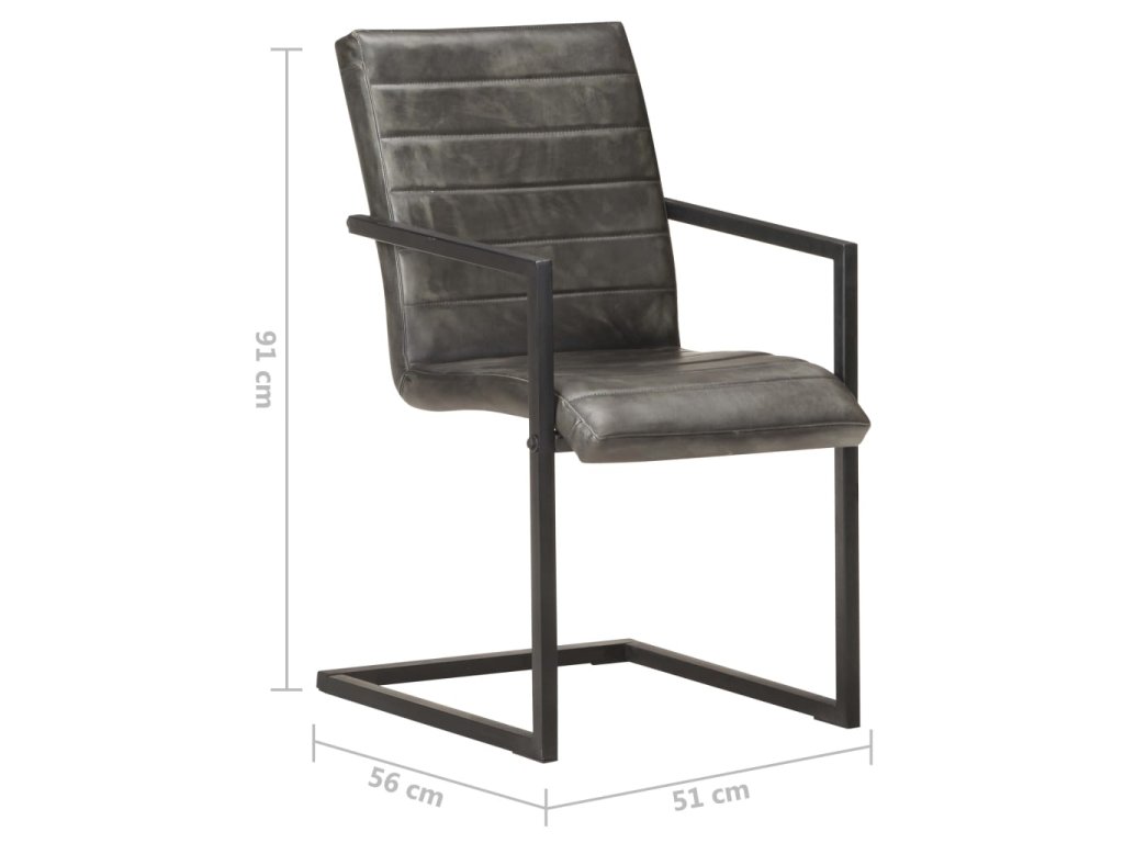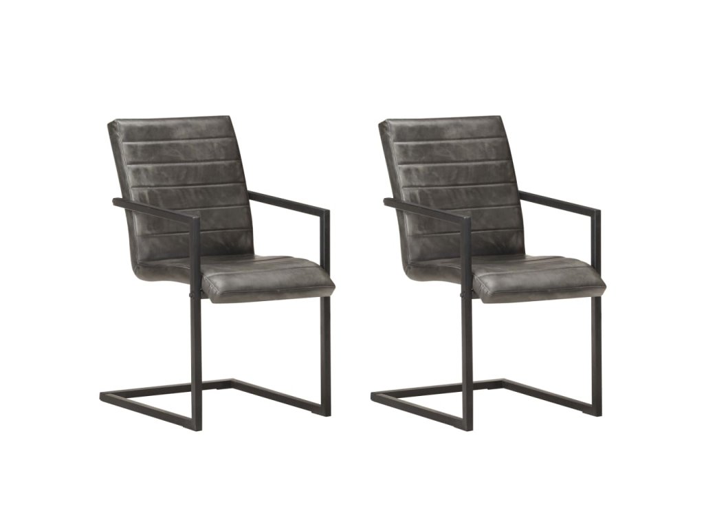 vidaXL Jedálenské stoličky, perová kostra 2 ks, sivé, pravá koža