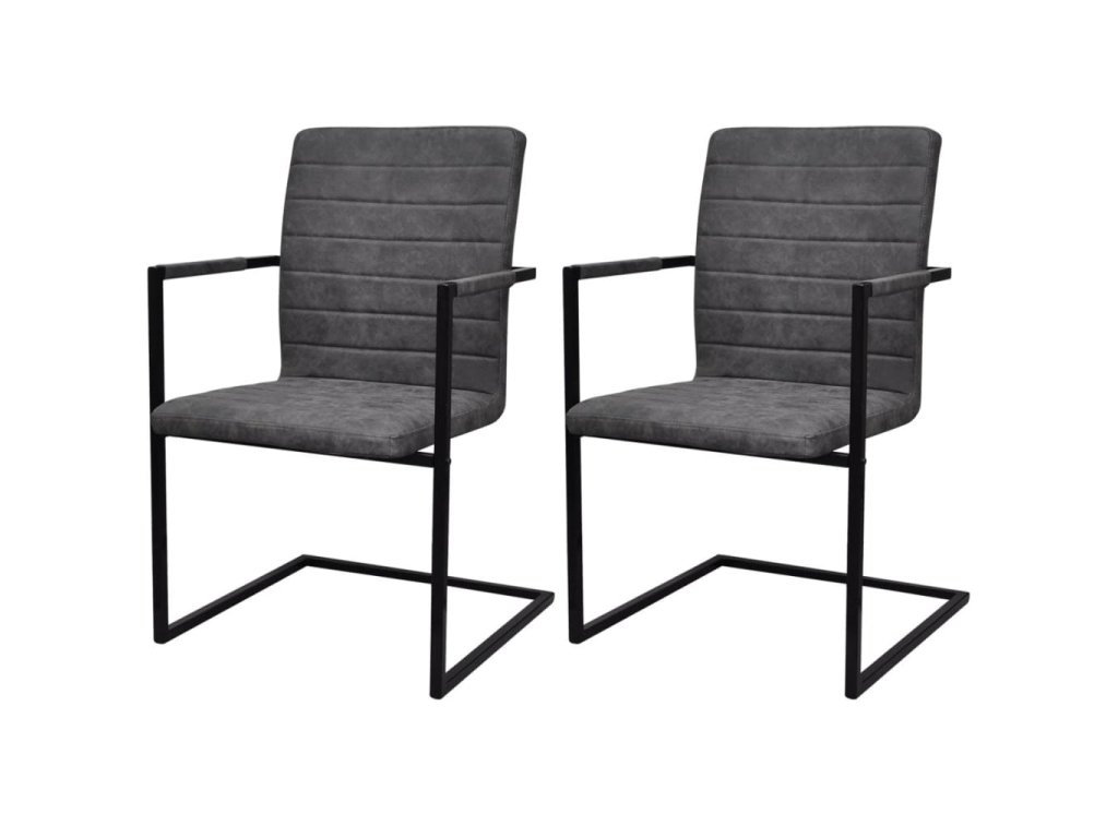 vidaXL Jedálenské stoličky, perová kostra 2 ks, sivé, umelá koža