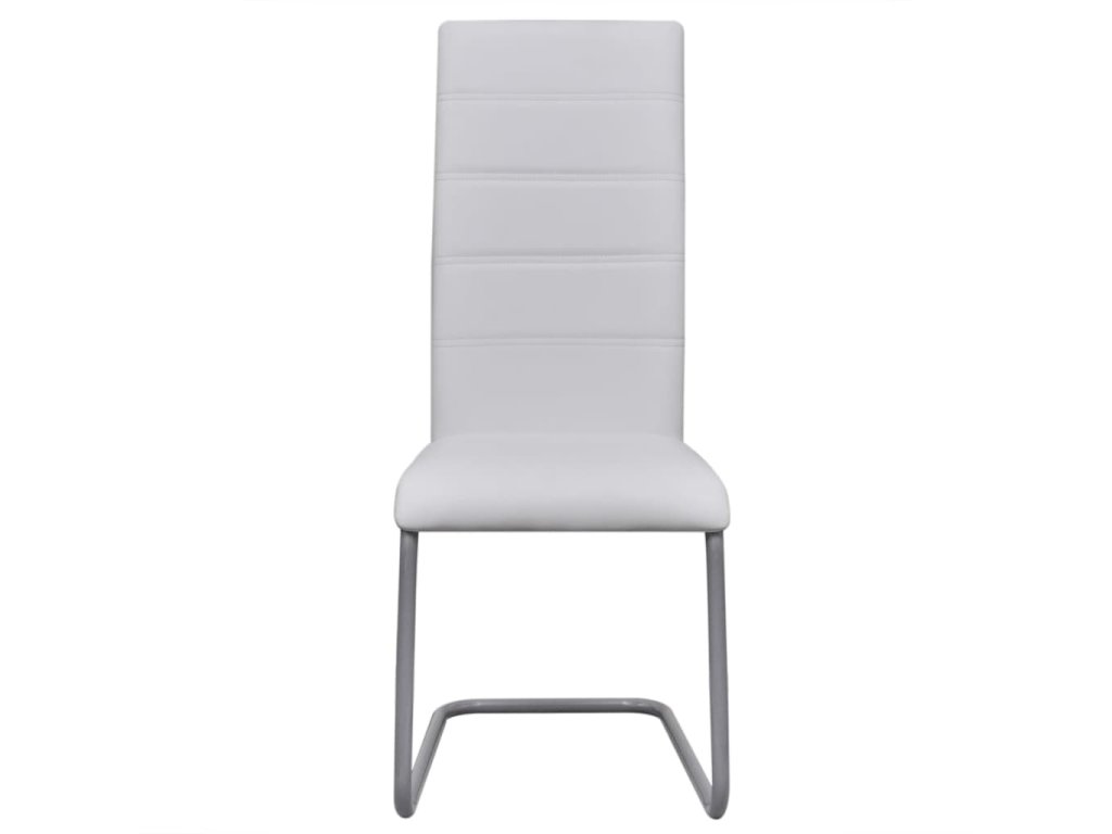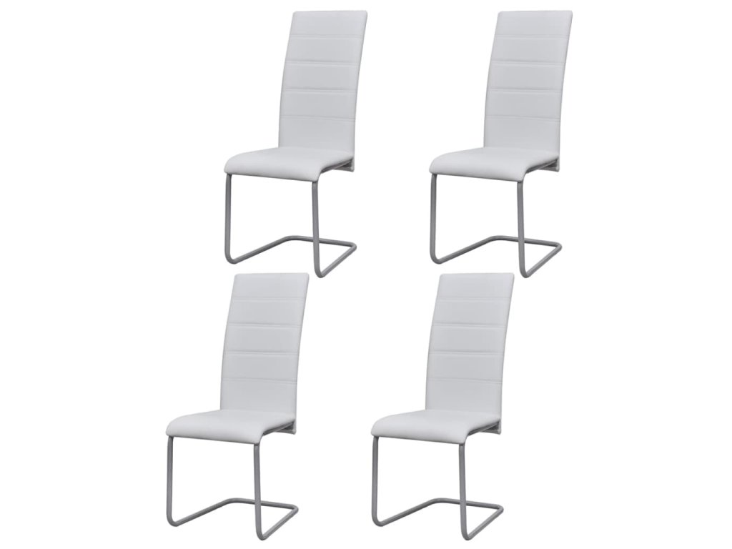 vidaXL Jedálenské stoličky, perová kostra 4 ks, biele, umelá koža