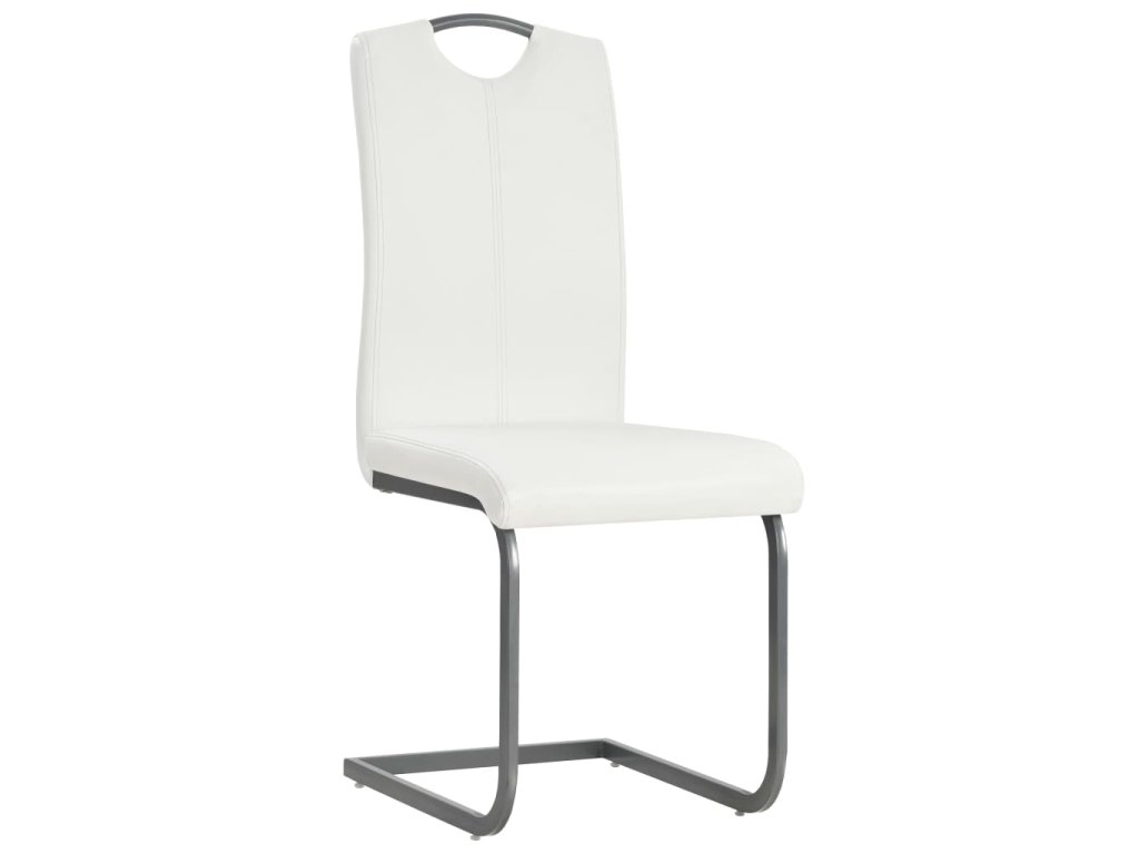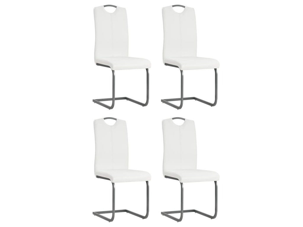 vidaXL Jedálenské stoličky, perová kostra 4 ks, biele, umelá koža