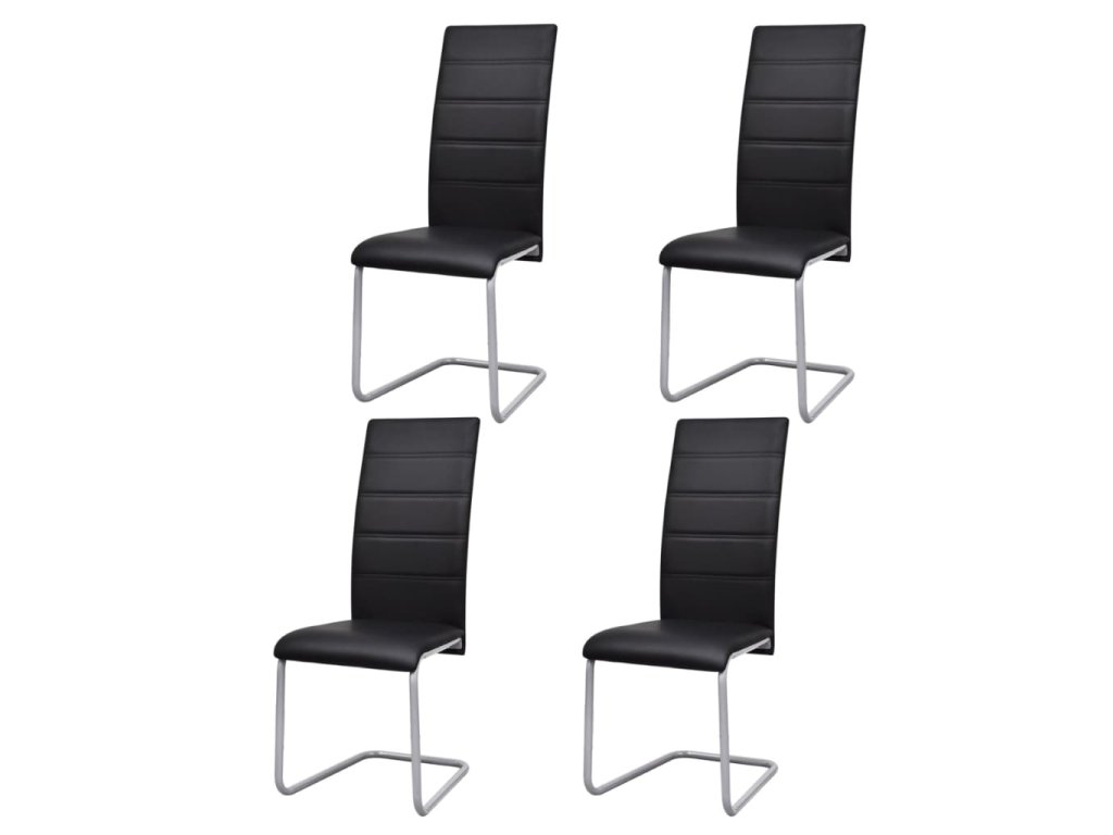 vidaXL Jedálenské stoličky, perová kostra 4 ks, čierne, umelá koža