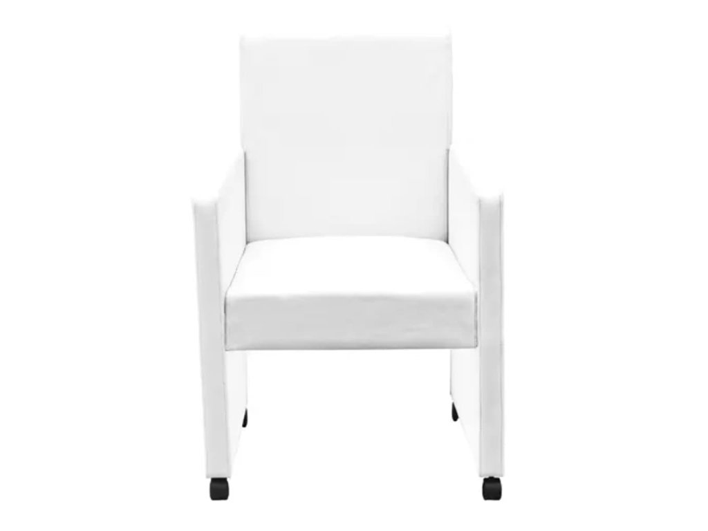 Jedálenská stolička je potiahnutá vysokokvalitnými materiálmi a vďaka hustému čalúneniu poskytuje optimálny komfort. Stolička má ergonomický dizajn, a tak sa na nej budete cítiť pohodlne celé hodiny. Je vybavená otočnými kolieskami, aby sa dala jednoducho premiestniť.