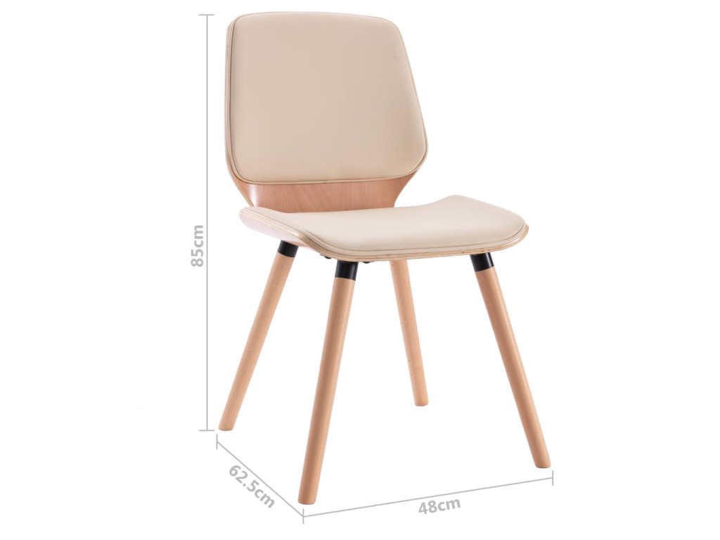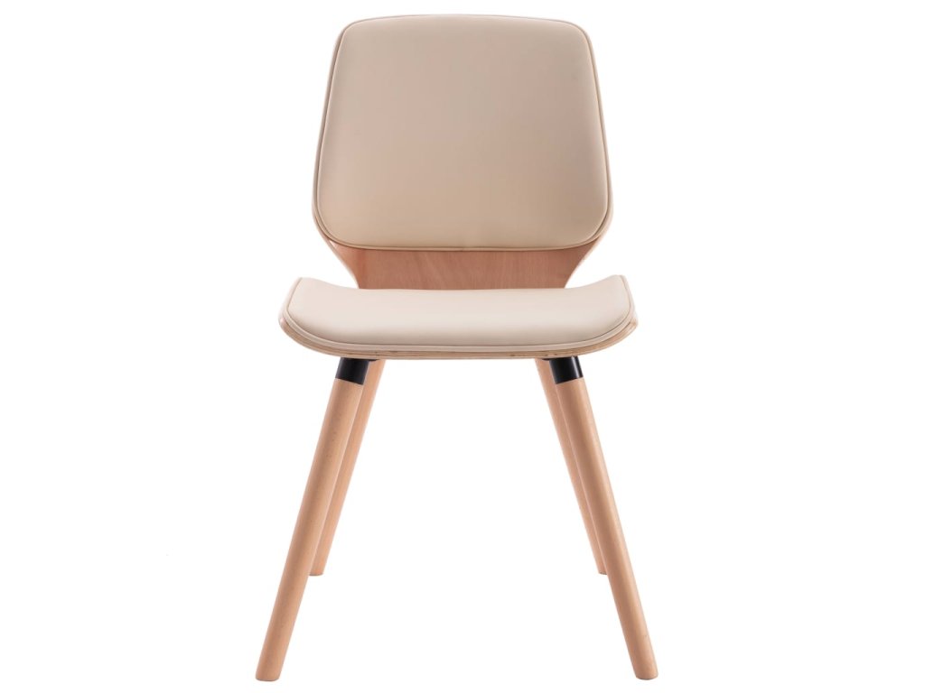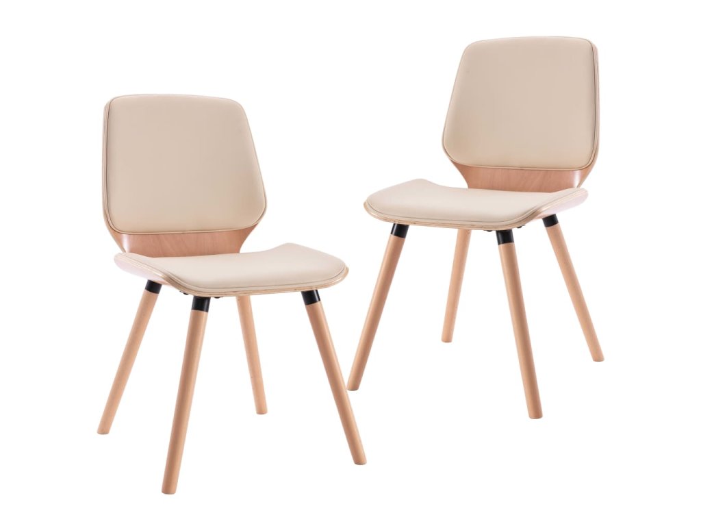 Každá stolička je husto polstrovaná a čalúnená ľahko čistiteľnou umelou kožou, ktorá poskytuje optimálne pohodlie. Robustný drevený rám má elegantný a moderný dizajn, ktorý stoličke dodáva jedinečný štýl. 4 drevené nohy sú pevné a stabilné. Ergonomický dizajn sedadla a operadla zvyšuje úroveň pohodlia stoličiek.