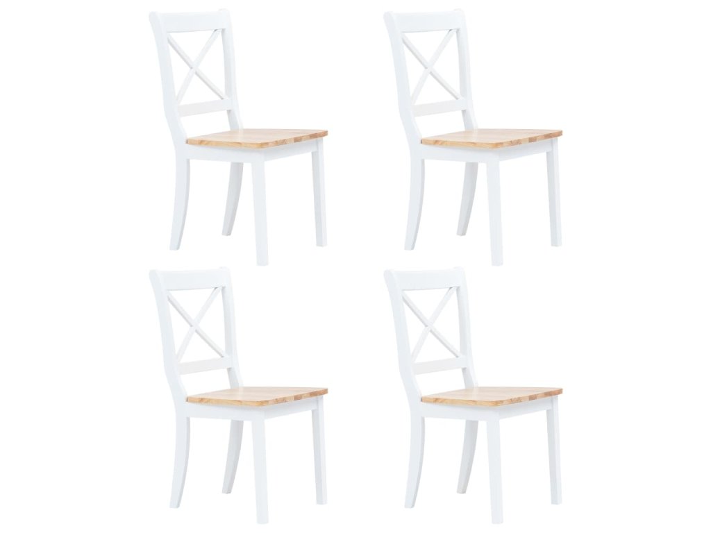 vidaXL Jedálenské stoličky 4 ks, biele a prírodné, kaučukový masív