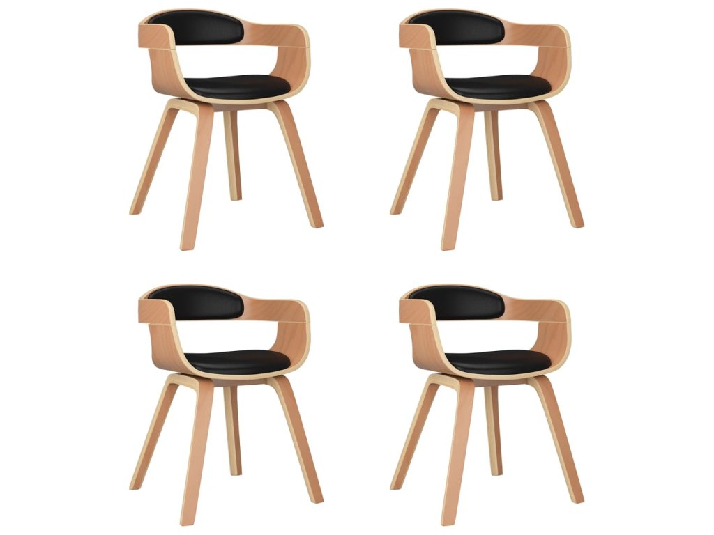 vidaXL Jedálenské stoličky 4 ks, čierne, ohýbané drevo a umelá koža