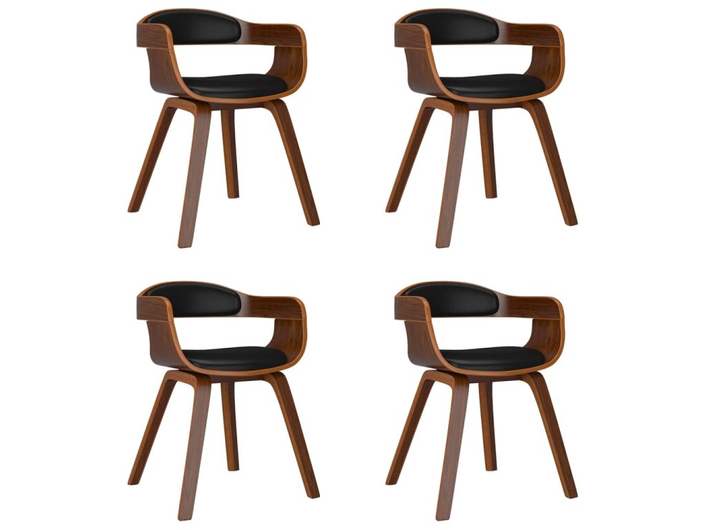 vidaXL Jedálenské stoličky 4 ks, čierne, ohýbané drevo a umelá koža