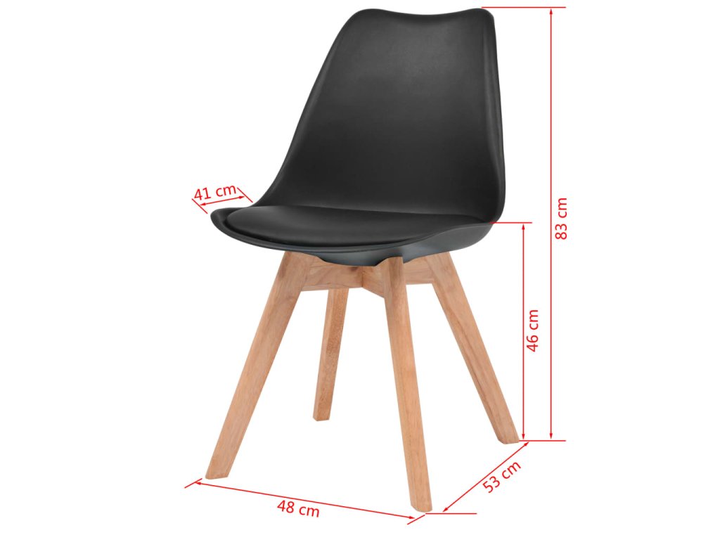 Stoličky majú ergonomicky tvarované sedadlo a integrované operadlo s moderným zaobleným dizajnom. Vstavané podložky na sedadlo z umelej kože poskytujú optimálne pohodlie. Krásne stoličky stoja na pevných nohách z dreveného masívu, vďaka čomu sú naozaj stabilné a trvácne. Montáž je veľmi jednoduchá.