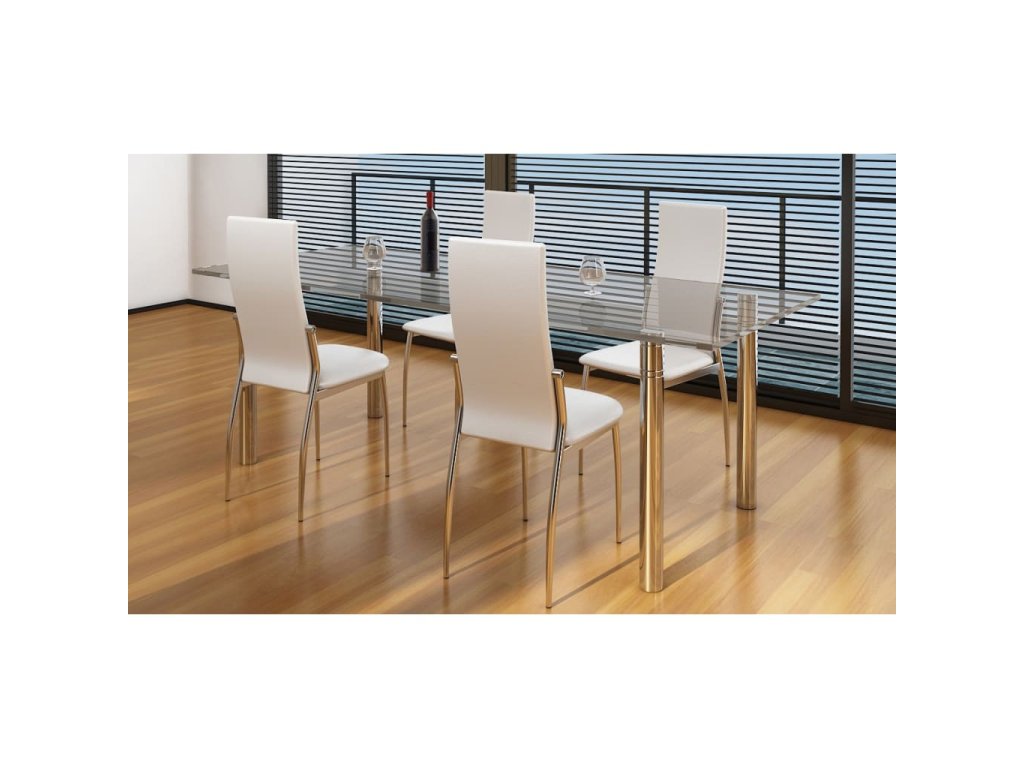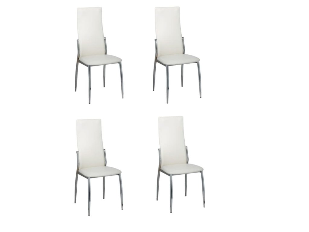 Táto sada 4 moderných jedálenských stoličiek má ergonomický dizajn, a tak poskytuje optimálny komfort pri sedení. Pohodlné jedálenské stoličky majú vysokokvalitnú a robustnú konštrukciu. Nohy sú vyrobené z pevného chrómu a sedadlo je vyhotovené z trvácnej umelej kože, ktorá sa dá ľahko očistiť.