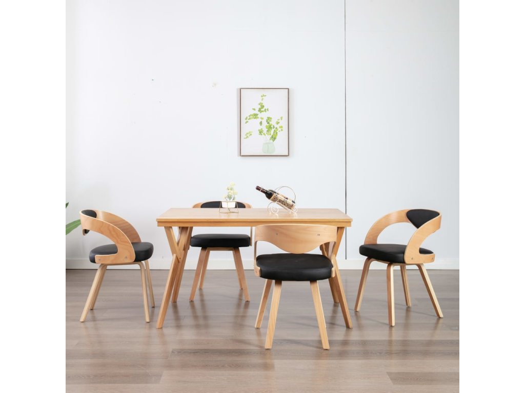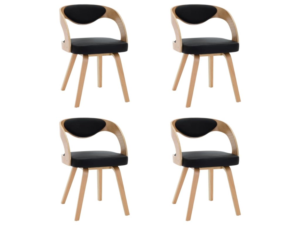 vidaXL Jedálenské stoličky 4 ks čierne ohýbané drevo a umelá koža