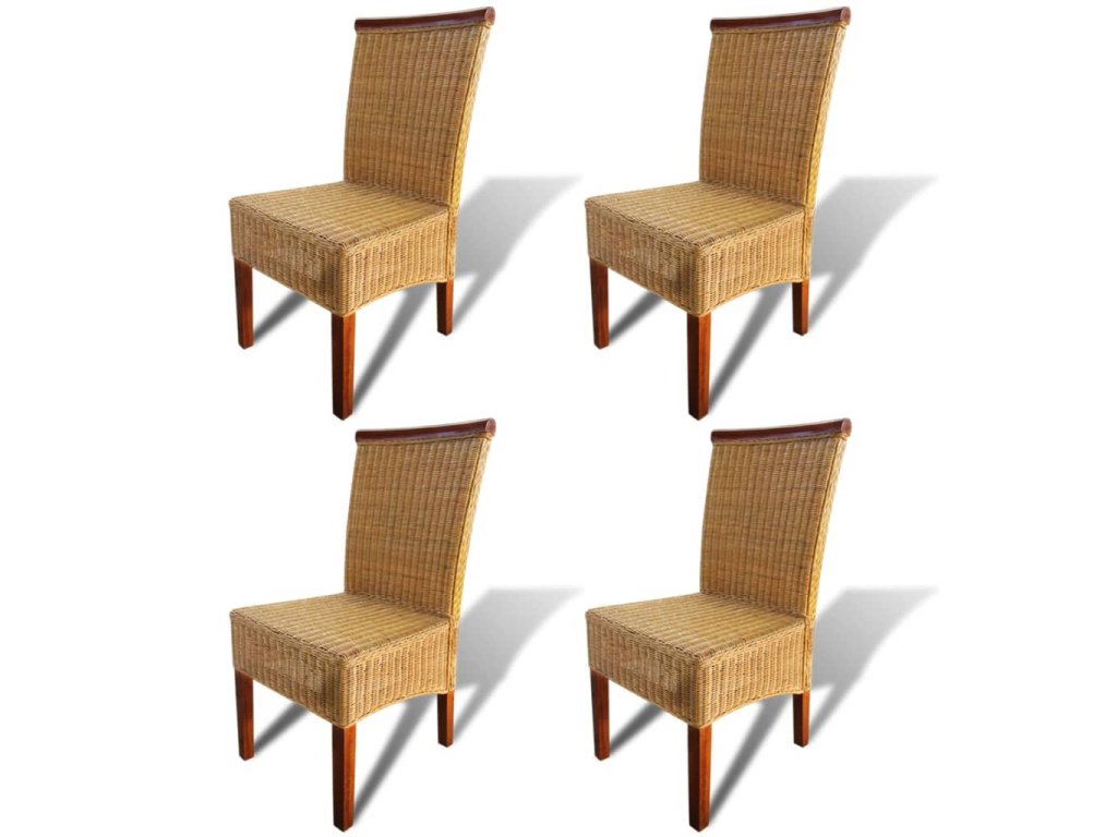 Sada jedálenských stoličiek z pravého ratanu s exotickým vzhľadom a ozdobným lemom z dreveného masívu predstavuje ideálny doplnok do interiéru. Rám z tvrdého dreva v kombinácii s pravým ratanom dodáva tomuto výrobku nielen výbornú stabilitu, ale aj estetický vzhľad.