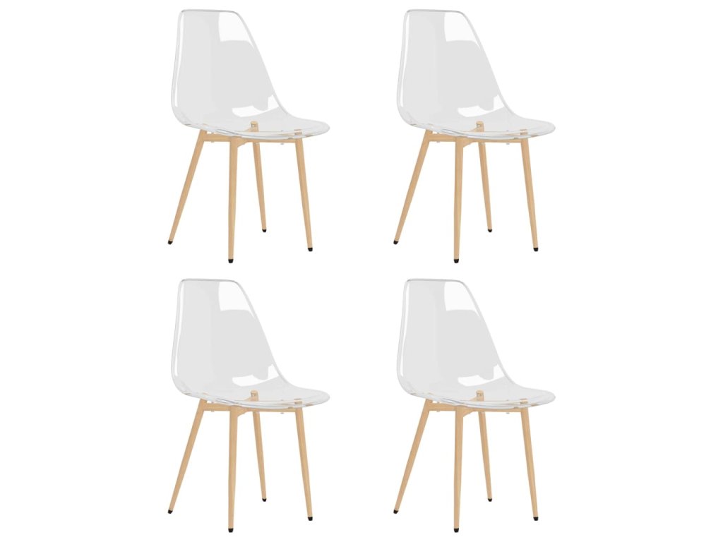 Jedálenská stolička má priehľadný sedák s hladkými líniami, vďaka ktorým má výnimočný vzhľad. Tieto jedálenské stoličky sú vyrobené z PET, vďaka čomu sa ľahko čistia. Kovové nohy dodávajú kuchynským stoličkám dodatočnú pevnosť. Stolička je navrhnutá s ergonomicky zakriveným operadlom, ktoré zaručuje maximálne pohodlie pri sedení. Podložky pod nohy zabraňujú poškriabaniu podlahy a zároveň dodávajú dodatočnú stabilitu.