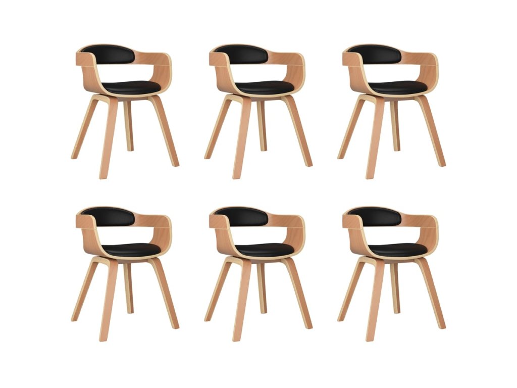 vidaXL Jedálenské stoličky 6 ks, čierne, ohýbané drevo a umelá koža