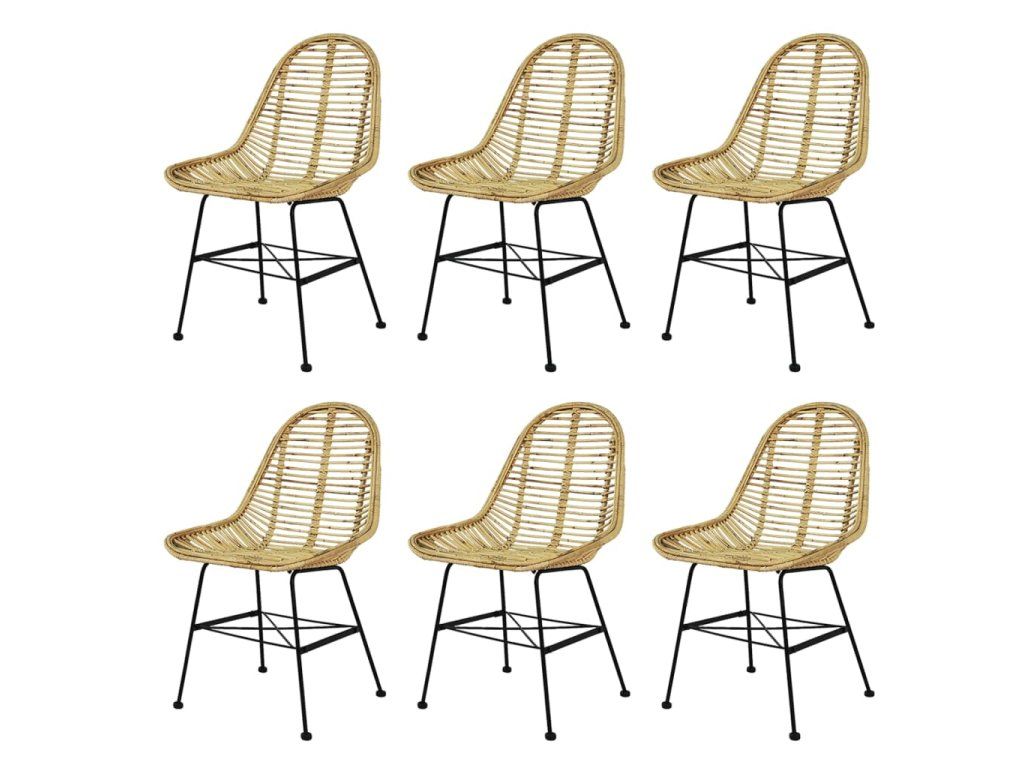 Jedálenské stoličky majú ergonomicky tvarované sedadlo, a preto sú veľmi pohodlné. Vďaka vysokokvalitnému materiálu z prírodného ratanu sú tieto jedálenské stoličky trvácne a dajú sa ľahko očistiť. Tieto krásne stoličky stoja na pevných nohách z kovaného železa, vďaka čomu sú skutočne stabilné a trvácne. Montáž je naozaj jednoduchá.