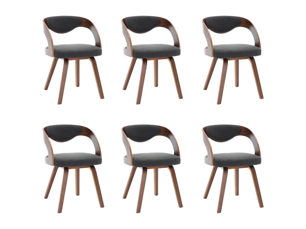 vidaXL Jedálenské stoličky 6 ks tmavosivé ohýbané drevo a látka