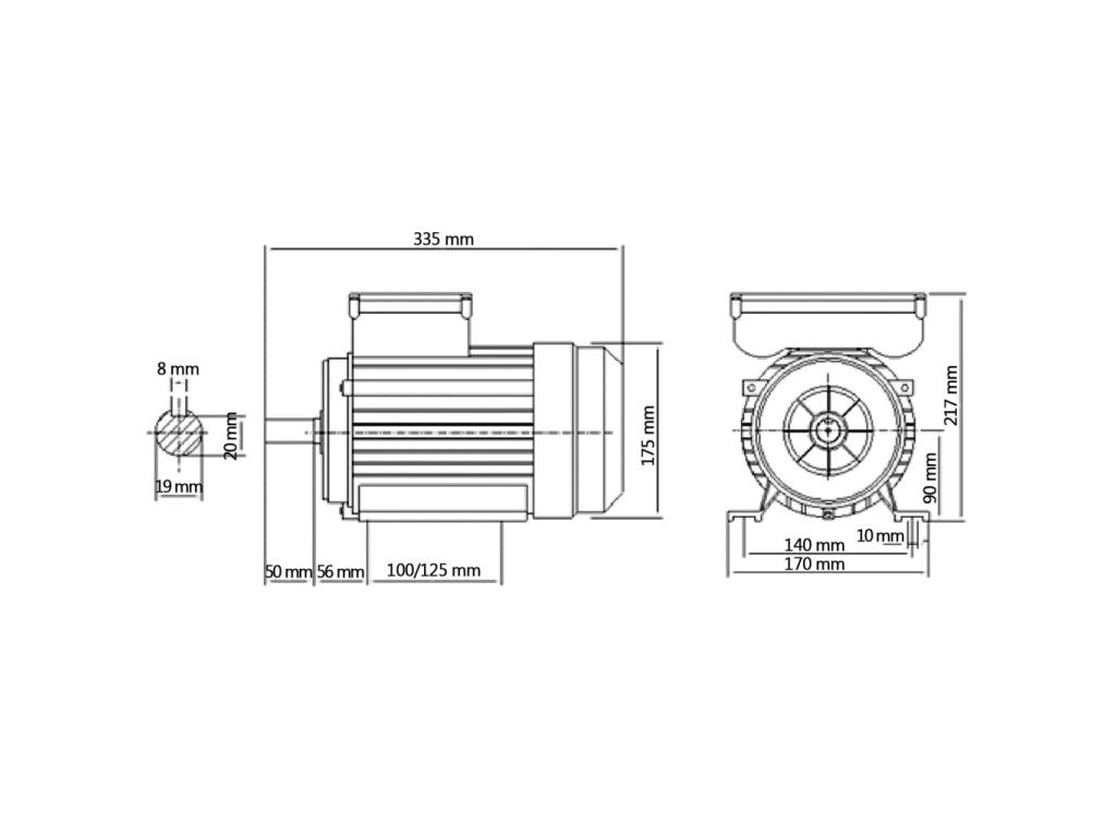 Kryt asynchrónneho motora je vyrobený z odolného hliníka, je pevný a spoľahlivý. Štandardný motor má stupeň krytia IP55, ktorý môže zabrániť hromadeniu škodlivého prachu, úplne zabraňuje dotyku s motorom a bez poškodenia sa dá umyť vodou. Je navrhnutý pre vysoký výkon, maximálnu rýchlosť 2 800 ot./min a 19 mm hriadeľ s vysokou tvrdosťou. Veľký ventilátor na jednom konci chladí motor počas niekoľkých hodín, dokonca aj v prašnom alebo vlhkom prostredí, čím znižuje náklady na energiu a prevádzkovú teplotu a zvyšuje životnosť vinutia.