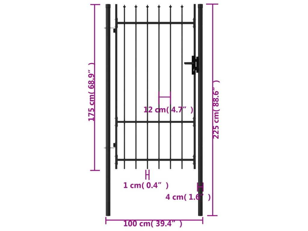 vidaXL Jednokrídlová plotová brána s hrotmi, oceľ 1x1,75 m, čierna