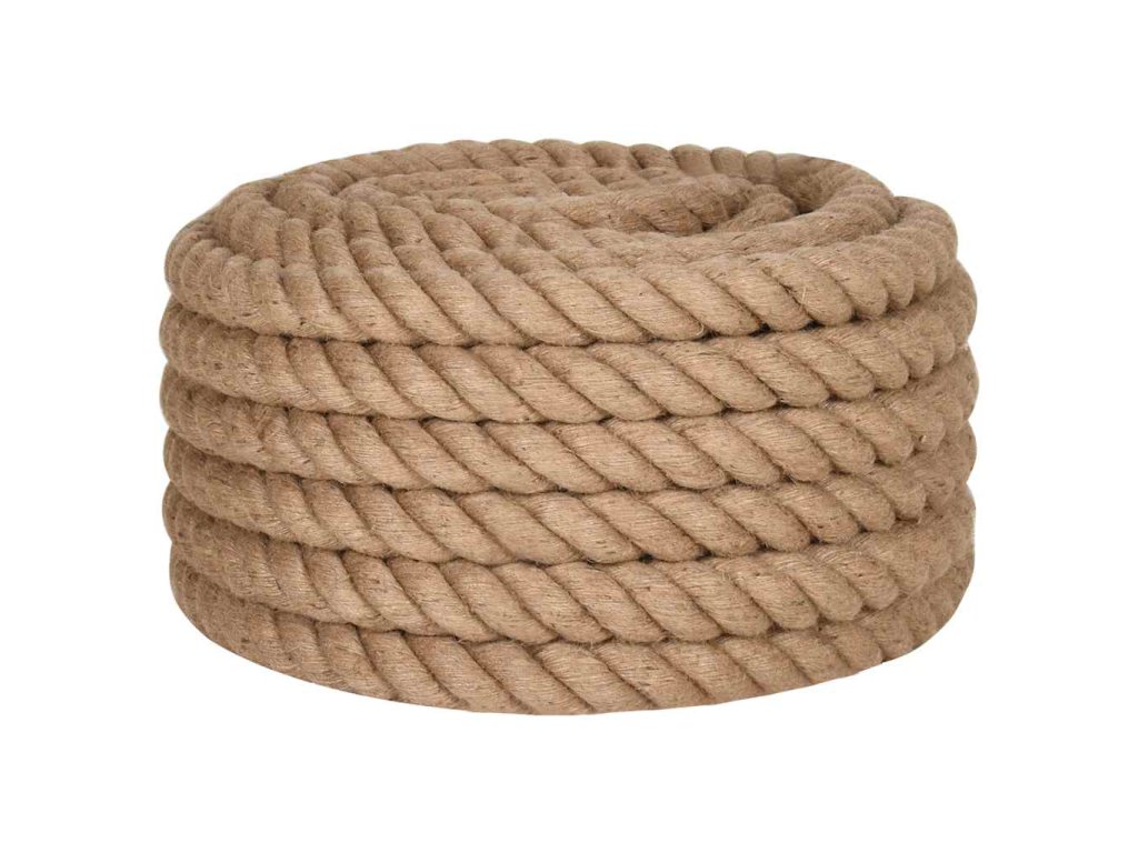- Prírodný materiál: Toto konopné lano je napevno upletené z 3 malých prameňov zo 100 % prírodnej juty, vďaka čomu je pevné, trvácne, odolné voči poveternostným vplyvom a bezpečné.