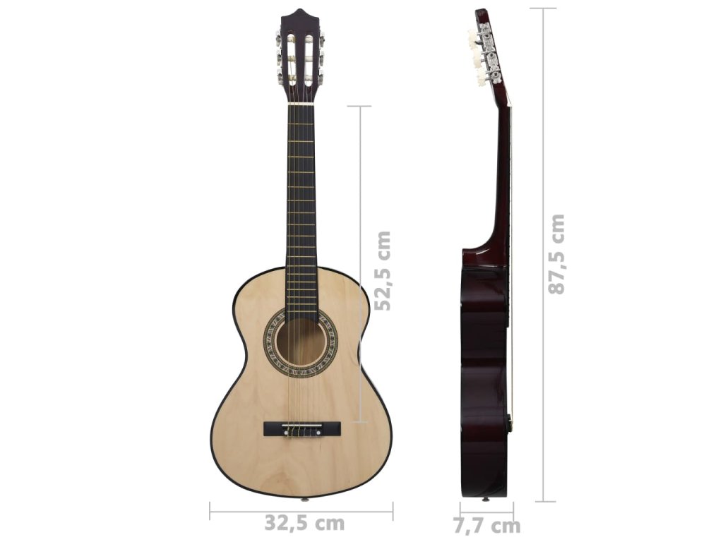Táto gitara je vyrobená z masívneho lipového dreva s tvrdými plastovými gombíkmi a hmatníkom. Hodnota tejto gitary spočíva vo vynikajúcej kvalite zvuku a krásnom klasickom dizajne. Táto gitara s 52,5 cm hmatníkom má všetko, čo potrebujete, aby ste sa mohli stať gitaristom.