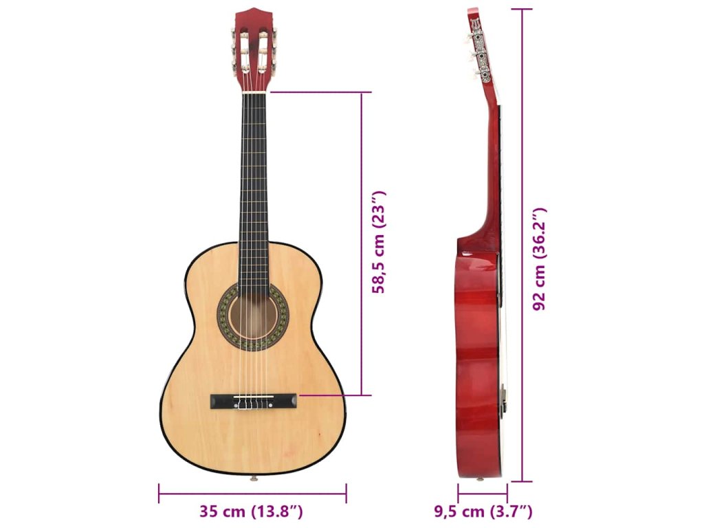 Táto gitara je vyrobená z masívneho lipového dreva s tvrdými plastovými kolíkmi a hmatníkom. Hodnota tejto gitary spočíva vo vynikajúcej kvalite zvuku a krásnom klasickom dizajnu. Táto gitara s 58,5 cm hmatníkom má všetko, čo potrebujete, aby ste sa mohli stať gitaristom.