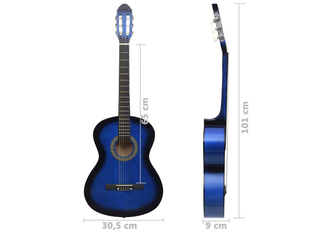 vidaXL Klasická gitara pre začiatočníkov modrá 4/4 39" lipové drevo