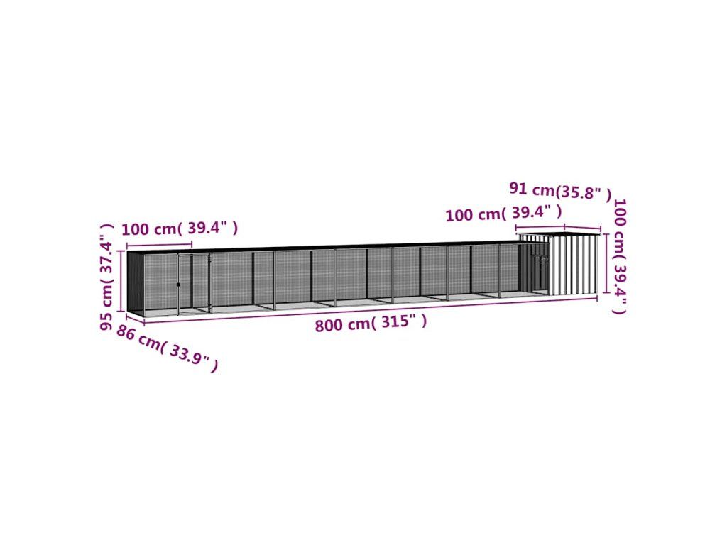 vidaXL Klietka pre kurčatá sivá 800x91x100 cm pozinkovaná oceľ
