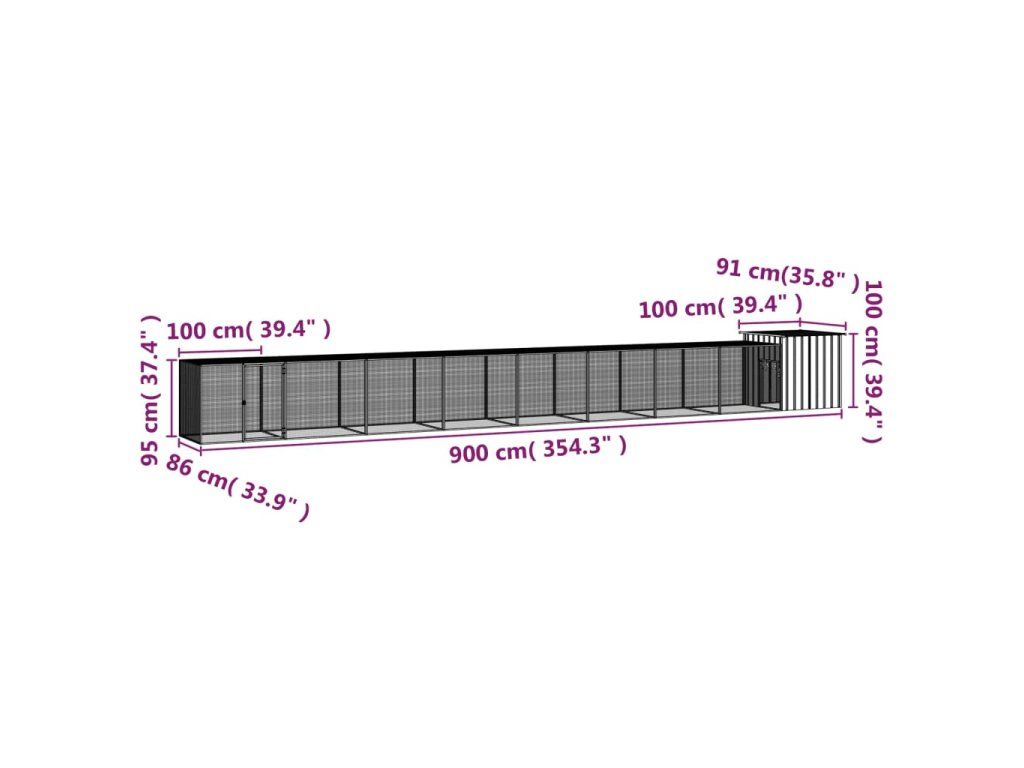 vidaXL Klietka pre kurčatá sivá 900x91x100 cm pozinkovaná oceľ