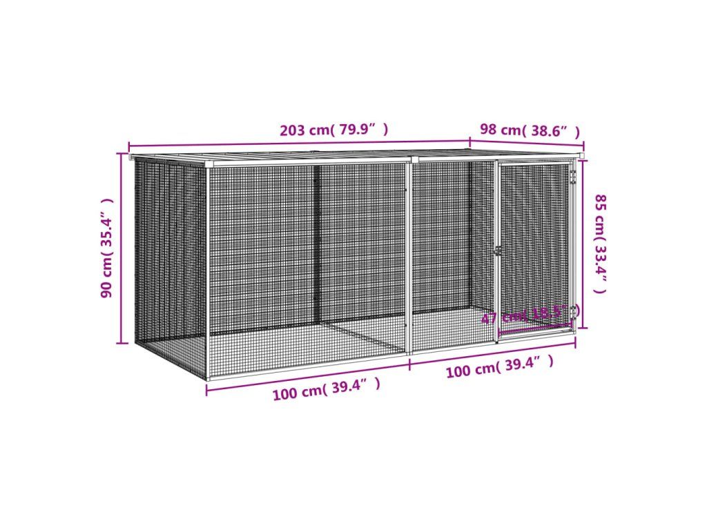 vidaXL Klietka pre kurčatá so strechou, antracitová 203x98x90 cm, pozinkovaná oceľ
