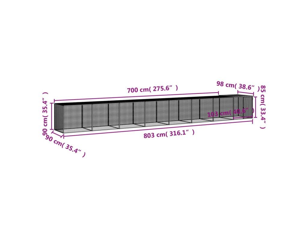 vidaXL Klietka pre kurčatá strecha antracitová 803x98x90 cm poz. oceľ